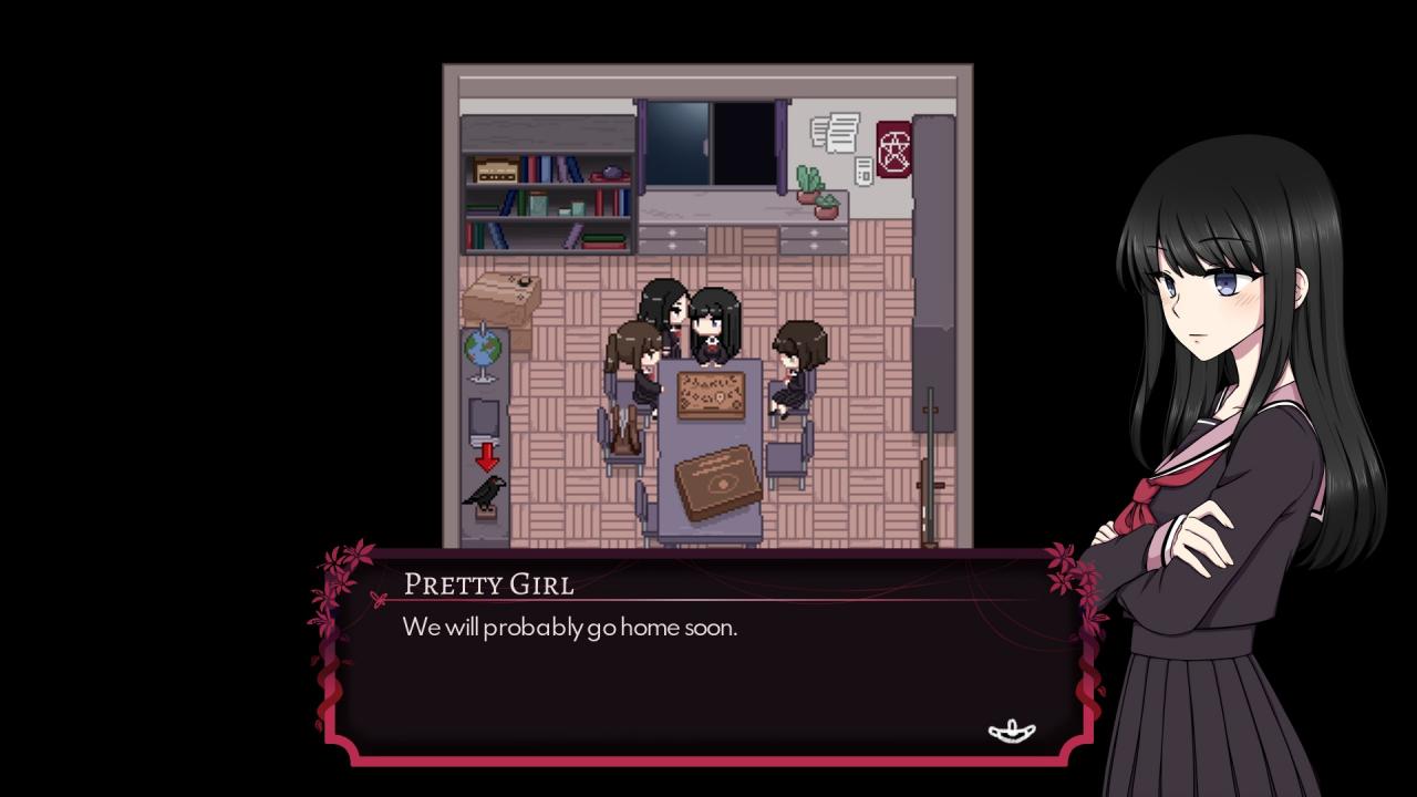 Once you do that, the girl sitting in the middle titled “Pretty Girl” will ask you what you’re doing. After that, you can walk up to her and talk to her about various things. Go through all the dialogue till Pretty Girl says “We will probably go home soon.” as seen in the picture below. This is very important for later.