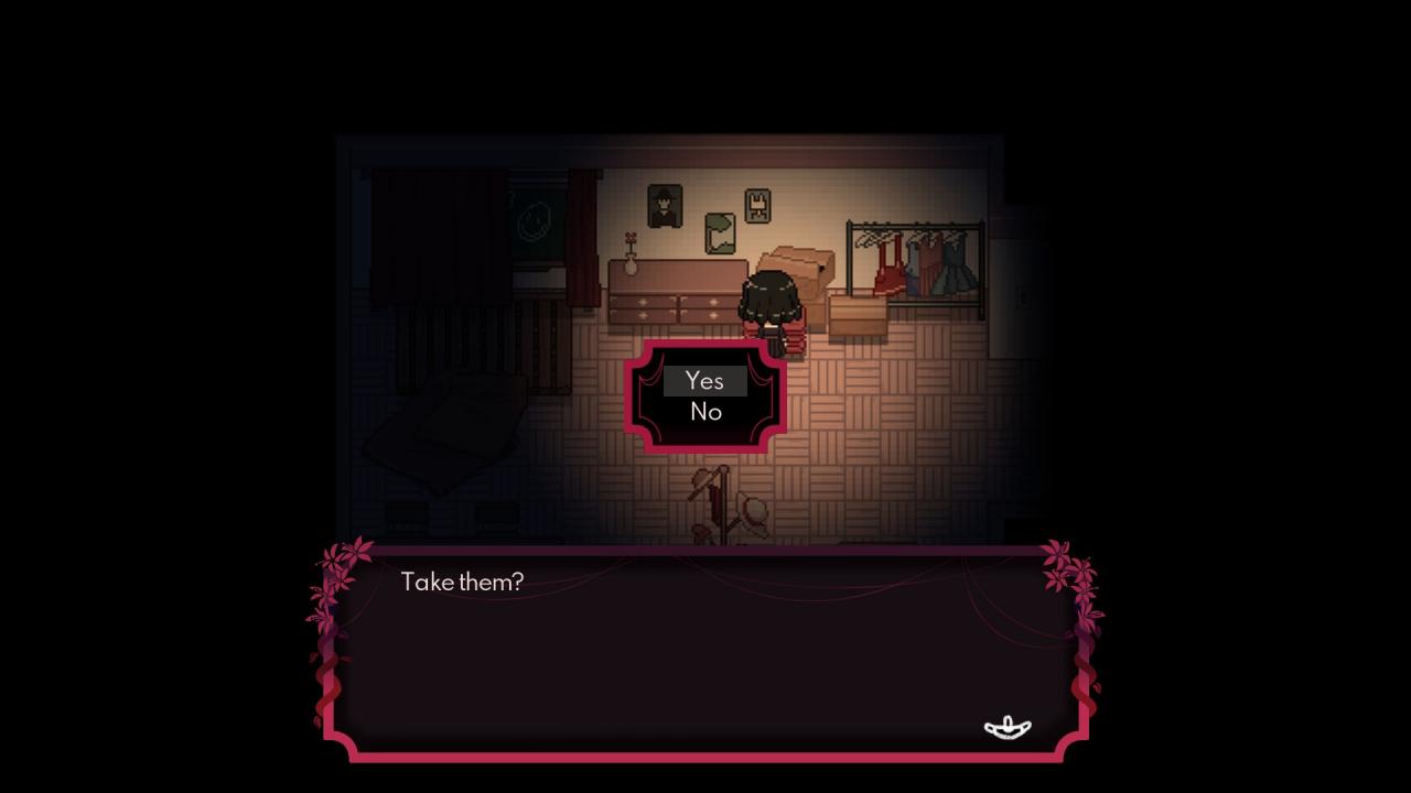 Before we leave this room, there’s one important thing we have to do. While closing the shades, you’ll notice the shades for the middle window are missing. Interacting with the window will give you the dialogue string shown below, and a new objective to find curtains.