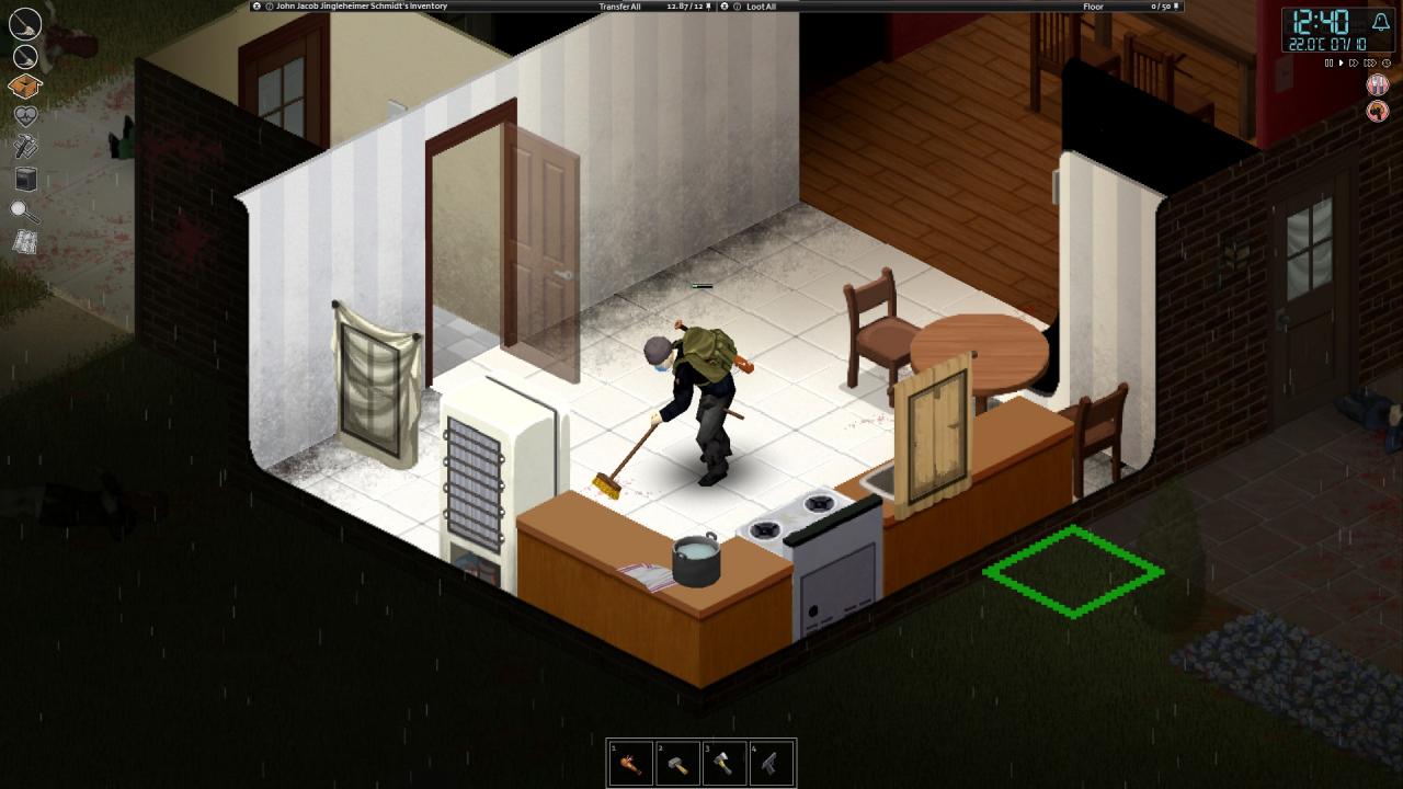 If your kitchen floors and walls are covered in blood, you should also consider obtaining a mop and a bottle of bleach. With these equipped, you have the option of right-clicking and choosing “Clean blood”.