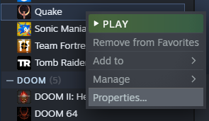 6. We will give right-click to “Quake” in our library, then to “Properties…”.