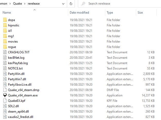 Your contents should be similar to this. Let us take notice of the ‘quakespasm.exe’ file. Rename it to ‘glquake’ and then save, DO NOT CHANGE THE FILE EXTENSION.