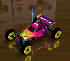 Evil weasel starts with a pretty good Top Speed for the Advanced rating. It also possesses good traction and decently good Grip. But, there are more flaws than it’s capabilities sadly… Acceleration is quite a shock to see on a car like this (I mean Evil Weasel looks like something that can accelerate quickly). Which is below average in most ways. This hinders the potential of reaching desired speeds in the race. Evil Weasel also suffers from off-road surprisingly. Due to poor Acceleration, jagged terrain becomes a challenging obstacle for the buggy, slowing it down more (This is one of the rarer weaknesses of a 4WD car can have.). And lastly, the Turning Radius. It is not really good for maps that have narrow roads and sharp turns, which hinders this car’s progress even more.