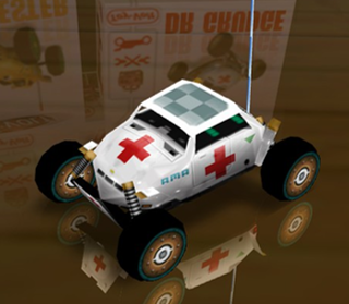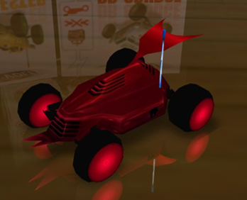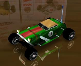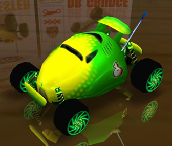 Being the first car that pops up on the selection screen, you probably expect this car is the “Mario” of the game with balanced stats and pretty much a generic race car design. And yes that is it. The car has all-around stats with plenty of different tricks that allows it to go on pretty much any kind of terrain. It is easy to control as well which fits for a starting car. You should kinda watch out for its light weight since it will not help enough to protect it from Pickups. Overall, this car is pretty decent with only little flaws that are not enough to overshadow its abilities.