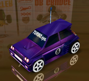 This indigo checkerboard pattern car has some pretty good stats. Having an amazing Acceleration, being the best in its rating, and Top Speed is something of a benefit too. The combination of these two stats makes Sprinter Xl a very powerful car in the Rookie Rating. Can blast through stages if given opportunity. Narrow Turning Radius is benefits it too. Since losing some speed to turn will not hinder it as Acceleration of this car will quickly get it back on the high speeds. Unfortunately, there are some major flaws plagues this car. Being a very light weight car, Pickups are very deadly against it. Even the slightest force can cause it to lose control, and on direct impacts from projectiles, sends the car into oblivion… The last flaw of this car is the rather below average Grip. 4WD configuration is not enough to cover this weakness as the car still suffers from sharp turns, causing it to lose control most of the time. Also, despite having 4WD, Sprinter XL performs poorly on slippery surfaces and sometimes, on off-road sections.