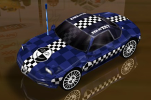This indigo checkerboard pattern car has some pretty good stats. Having an amazing Acceleration, being the best in its rating, and Top Speed is something of a benefit too. The combination of these two stats makes Sprinter Xl a very powerful car in the Rookie Rating. Can blast through stages if given opportunity. Narrow Turning Radius is benefits it too. Since losing some speed to turn will not hinder it as Acceleration of this car will quickly get it back on the high speeds. Unfortunately, there are some major flaws plagues this car. Being a very light weight car, Pickups are very deadly against it. Even the slightest force can cause it to lose control, and on direct impacts from projectiles, sends the car into oblivion… The last flaw of this car is the rather below average Grip. 4WD configuration is not enough to cover this weakness as the car still suffers from sharp turns, causing it to lose control most of the time. Also, despite having 4WD, Sprinter XL performs poorly on slippery surfaces and sometimes, on off-road sections.