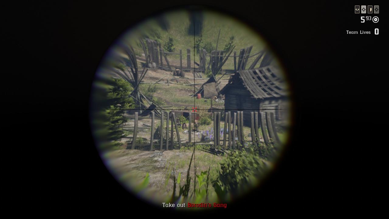 Once you’ve dealt with this 2nd wave of enemies you probably think you are safe. Well you’re not. Leave Nik inside the shack and venture outside the red borders I’ve shown on the pic below. And run back to the shack very very fast as more enemies will come to fight you in the same fashion as during wave 2. Wave 3 is likely to catch people leaving with Nik off guard on their horse in a field without the protection of the shack.