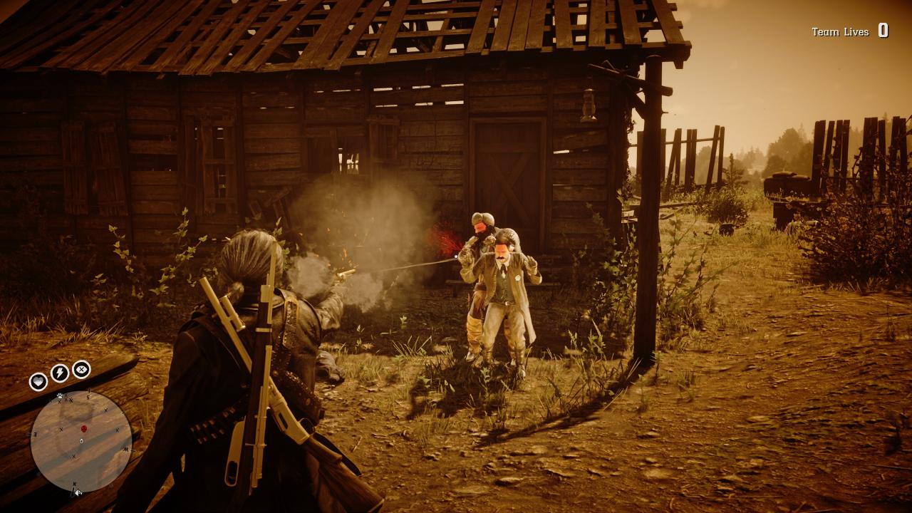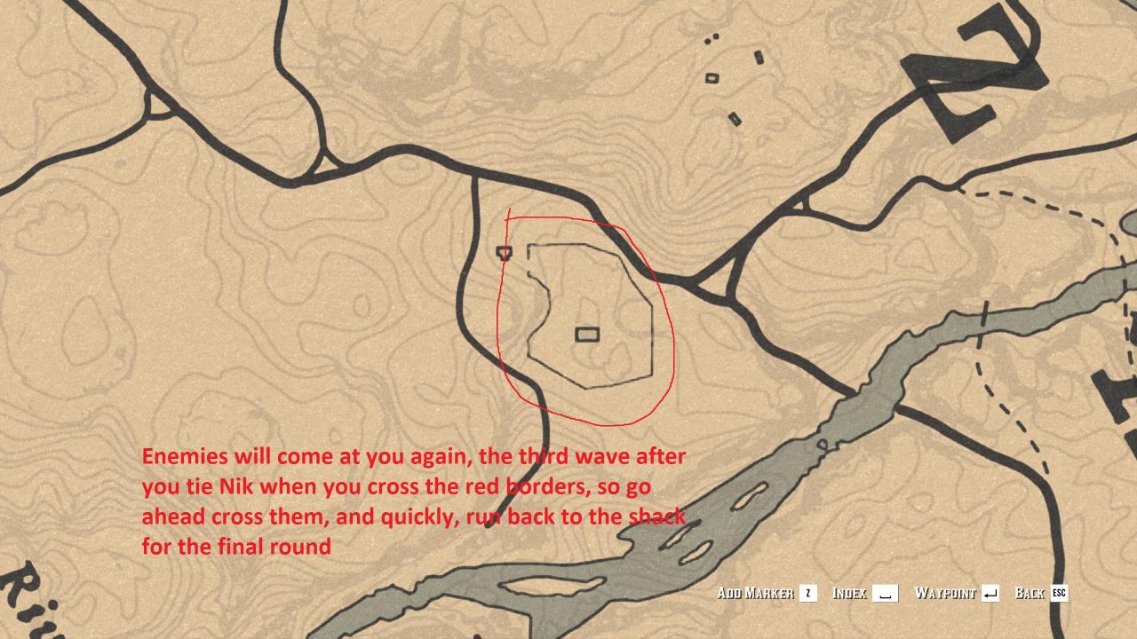 will come out of his hut with a hostage. You gotta shoot Nik several times in the sawed off shotgun. If you hit the hostage, do not worry, who cares if he lives. Anyway, shoot him around 3 times with a navy revolver in the sawed off and he will drop his gun and lie wounded on the ground. Tie him up and bring him inside the shack. If you can’t wound him and end up killing Nik instead just use lasso to tie him up, either tackle with it or throw, but be quick or he will kill you with shotgun.