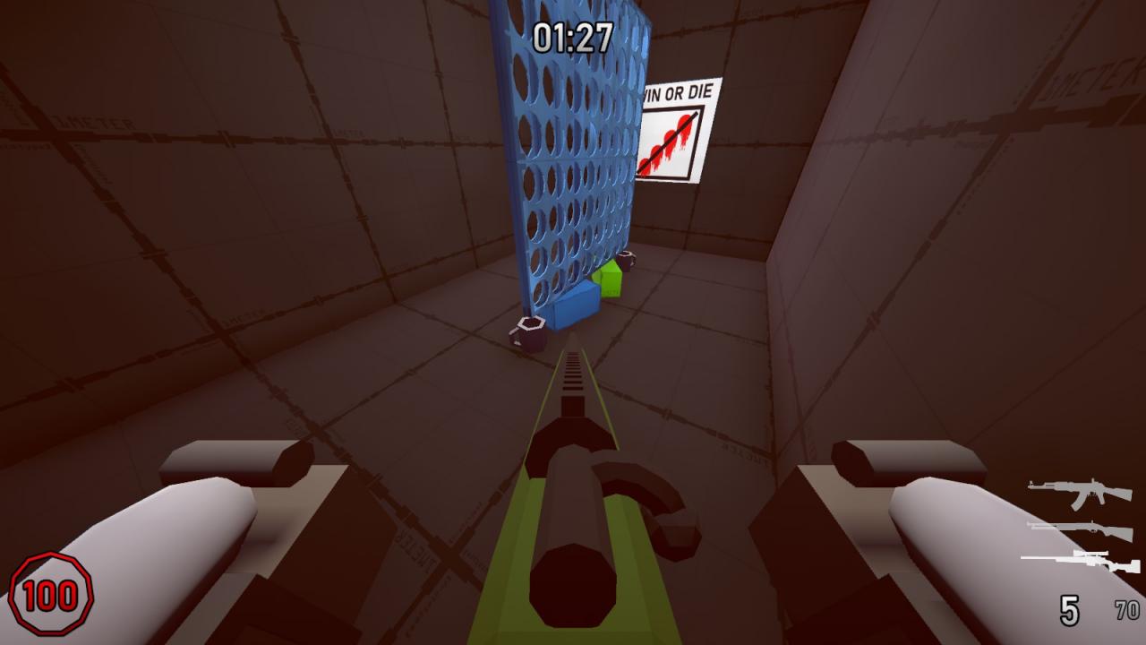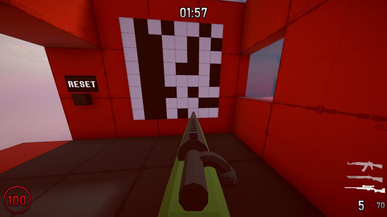 On the level playground in the red building there is a white grid that changes when shot. all you have to do is shoot the squires in the correct order to spell the word Redmatch in binary
