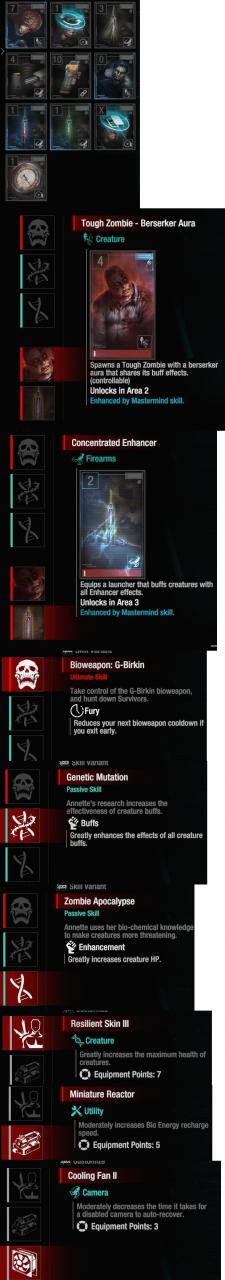Zone 3: this one is easy spam as many lickers as you can and though zombie remember if you hit the though zombie with your enhanced buff every new zombie or licker you spawn around him will also get all the buffs once you got some bio energy back keep spawning near the core, it depends on the map if a rocket launcher becca can destroy the core from far away just keep spawning zombie near her the goal is to have so many lickers that they can’t deal with the chaos make sure to use turret when your zombie limit is reached and use immobilizing shot on becca or the melee survivors to make sure your creatures won’t get killed too fast with the amount of bio leech you get back you can most likely spam immobilizing shot a few times till they die and to make the chaos perfect once you have enough lickers get william out and focus on a character that could save others for example martin with his stun or tyrone with his kick the other chars have to waste precious grenades to stop your insta kill and thats what we want ofc so they have less grenades to stop our creatures.