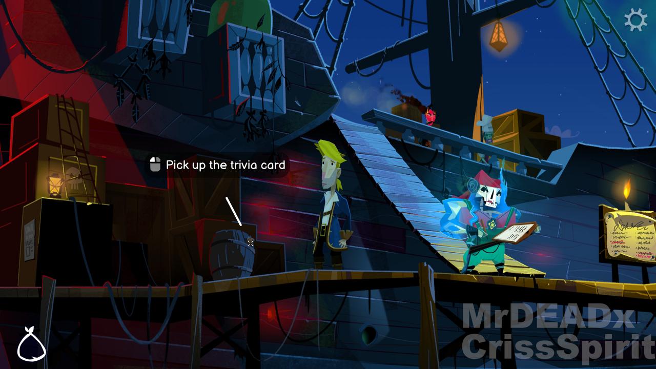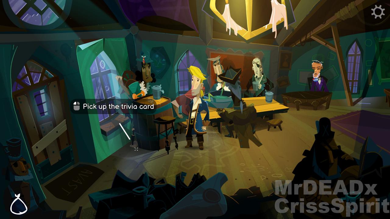 To start your Trivia collection you will need to firstly get your hands on the Trivia Book that you can find within the Scumm Bar, on the table next to the pirates that are having a drink. When you pick up the Trivia Book you will automatically receive your first trivia card that you can answer straight away (question no.6 on the first page).