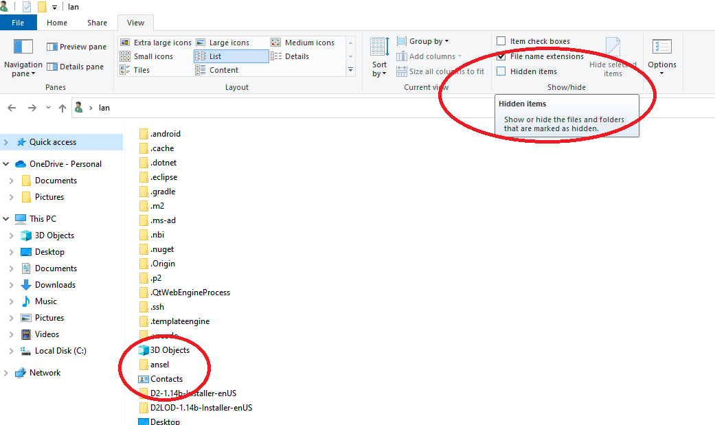 ****If you are unable to see the AppData folder (I think it might be hidden by default?) the only thing you need to do is to select ‘Hidden Items’ in the view tab of your File Explorer, like so: