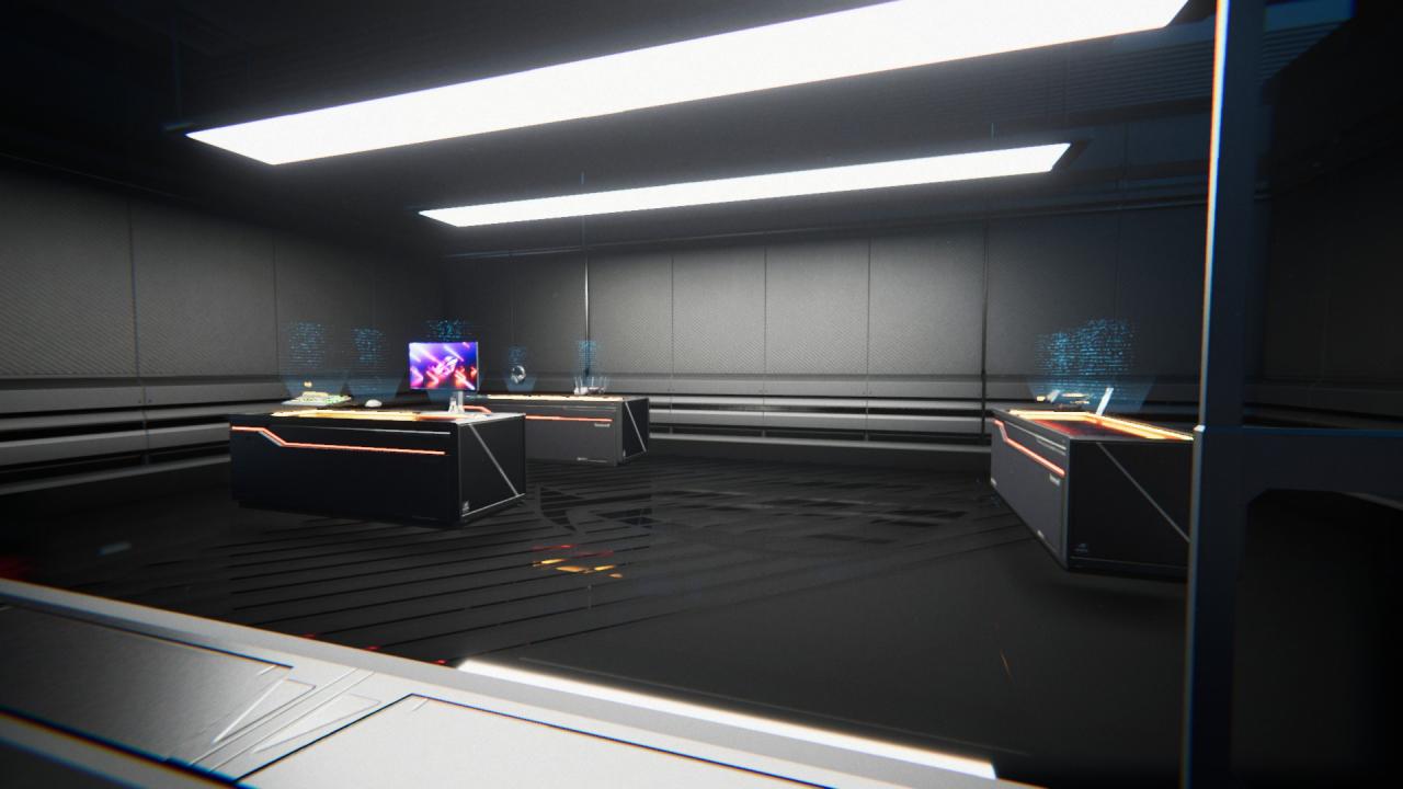 - The 3 graphic cards and the computer on one of the side of the main room :