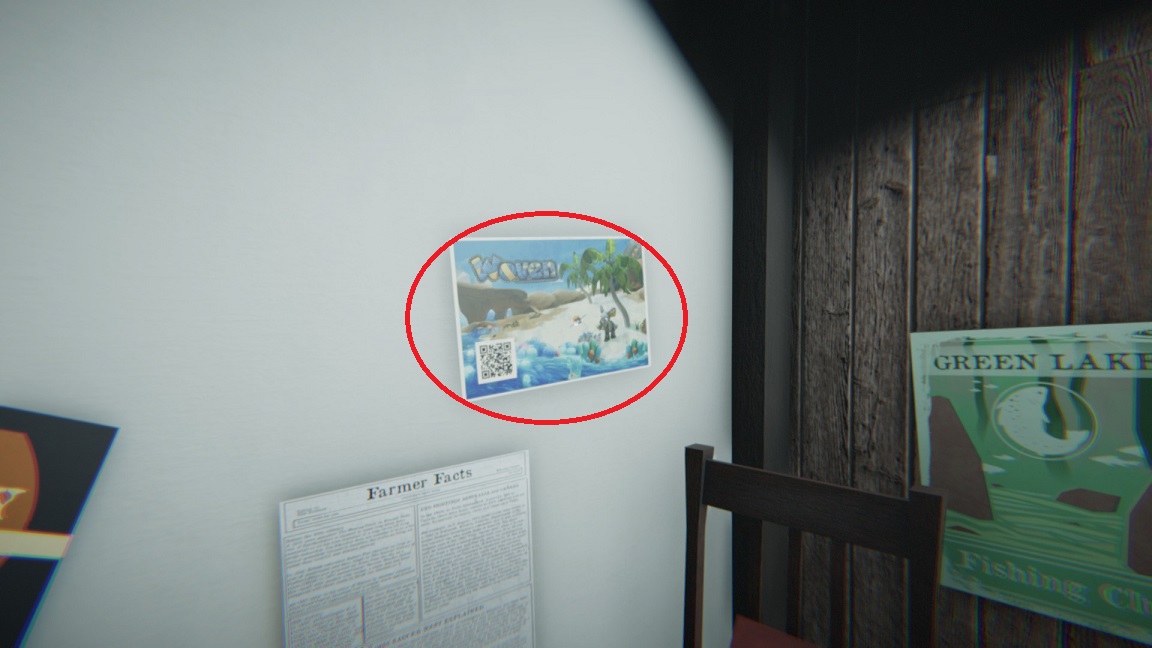 Once you go through the reinforced door you can go up to the attic. The sticker is on the wall, which will unlock your first achievement. Make sure you loot up all collecltibles on the attic before using the computer there: