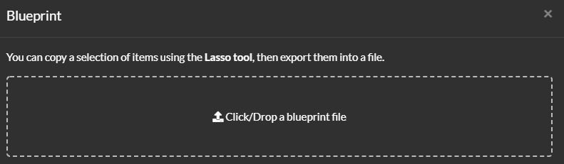 You will then get a pop up window asking you to drag your Blueprint to it. Go to where your saved Blueprint file is and drag it into the box.