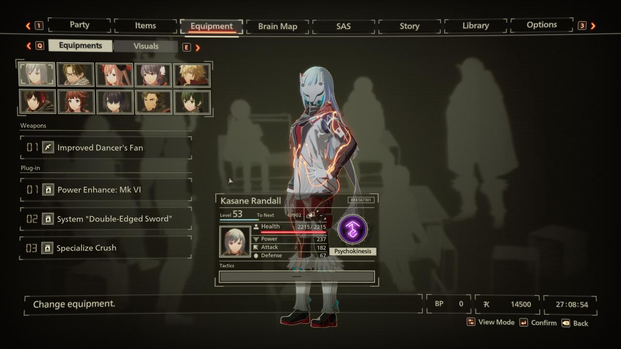 – Weapons are pretty self-explanatory. More damage, easier time fighting. Don’t forget that a new weapon will only raise your attack stat (melee attacks), and not your power stat (psychokinesis attacks). Yuito relies more on his weapon than psychokinesis, and vice versa for Kasane. Prioritize weapons if you’re playing as Yuito. Of course, don’t forget to upgrade your party member’s weapons as well.