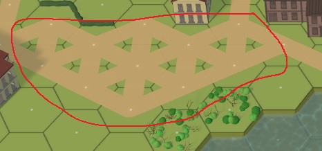 Building hex – other or open terrain – Building hex. Similarly with bridges.Note that some terrain that doesn’t look like buildings is treated as a building by the engine, and should be treated the same as buildings when designing your map. This includes anything in the Buildings menu such as Street Cars and Train cars.