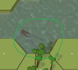 Bridges are only possible on maps with water, and will include a road connection on both ends. They are positioned similarly to roads, where they are rotated in the hex depending on which hex vertex you point at (or using the R and T keys).