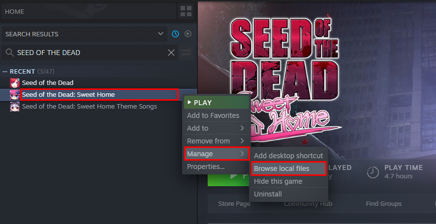 ⠀ - Right-click Seed of the Dead: Sweet Home in your Steam library and then select “Manage > Browse local files”