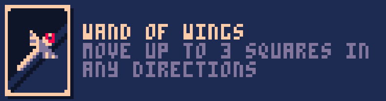 Review: While all wands are good, this one is the most boring. Free movement up to 3 squares is certainly enough to get you out of trouble though.