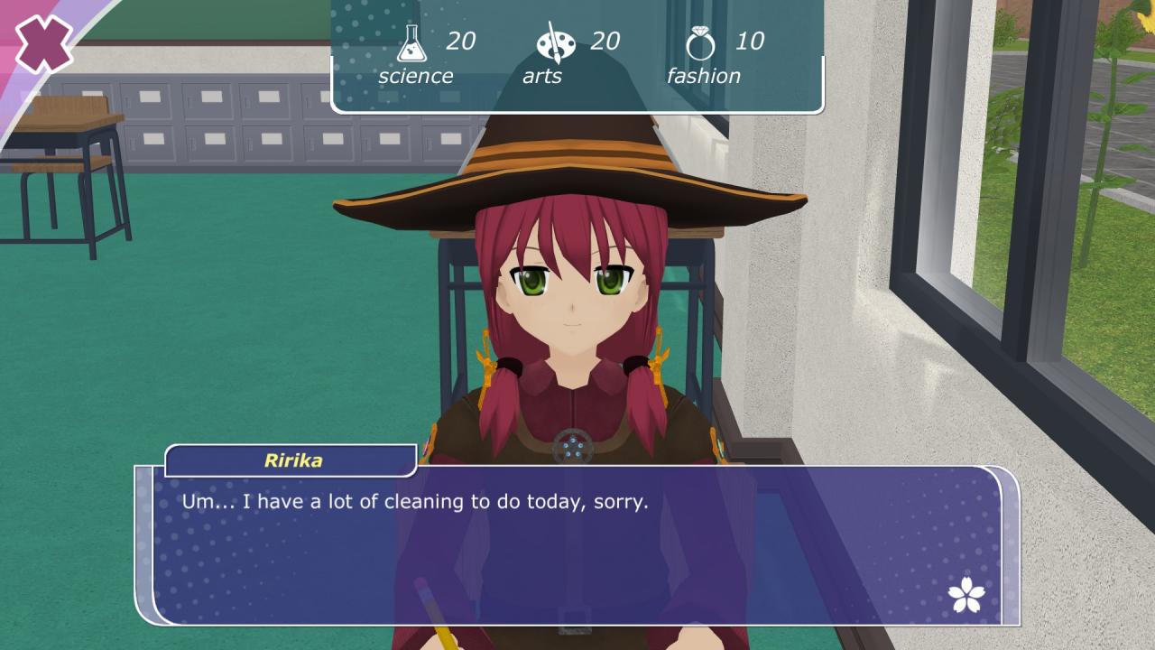 In Shoujo City you can date 6 girls (not to mention dakimakura), and all demand different skills before you can interfere with them. Here they are:- Ririka – 20 science, 20 arts, 10 fashion