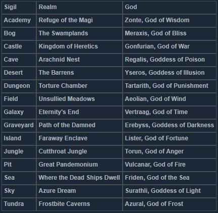 Sigil names have two variables: random adjective before “Sigil of the” and a location descriptor afterwards.