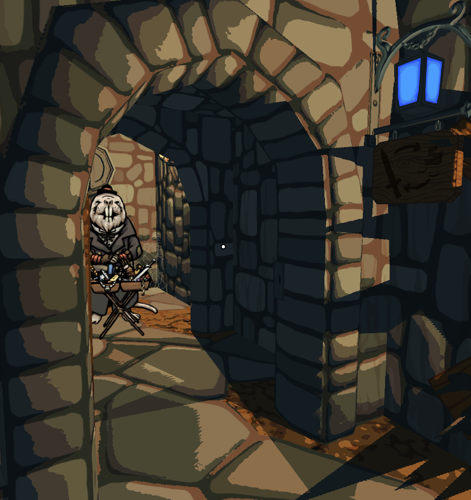 A small room with the shopkeeper. Can’t be robbed, damaged, only interacted. More on that later. Marked on the map with a coin Icon.