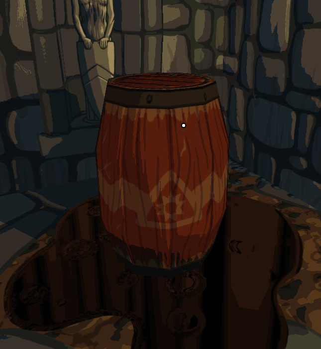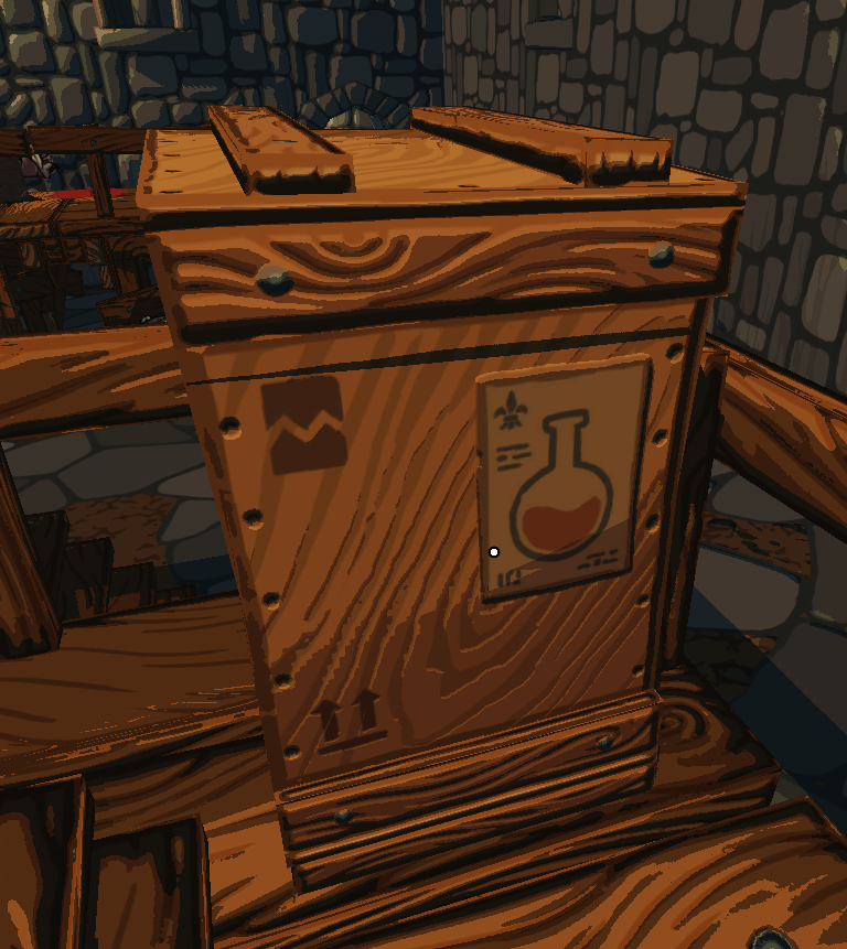 A tall crate with a potion symbol on it. Smash it with your weapon to get the potions and food