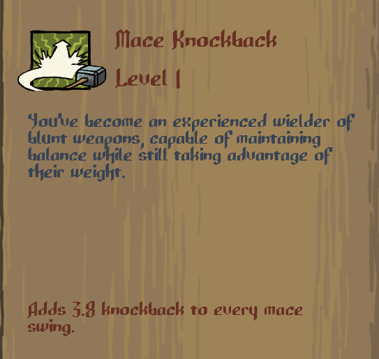 –Maces: They are slow, but hit hard. If you kite your enemies and always charge up your weapon, this is for you. (Special Skill “Mace Knockback” which surprisingly knocks enemies back)