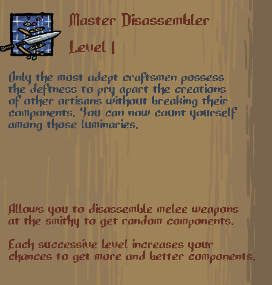 There is also the skill “Scavenger” that allows you to destroy corpses for a chance of a component and the skill “Master Disassembler” that allows to disassemble melee weapons at the smithy for a chance of good components. Lock and level them for long term benefits.