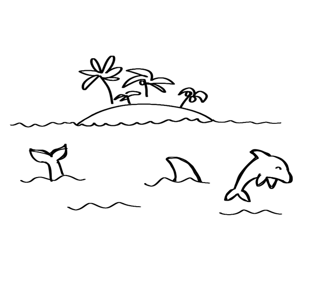 How many fins can be seen above a wave?
