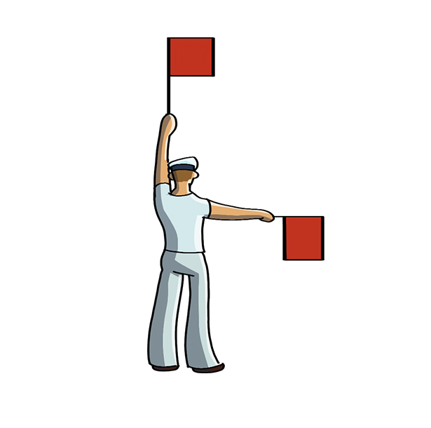 The flags resemble the clock hands