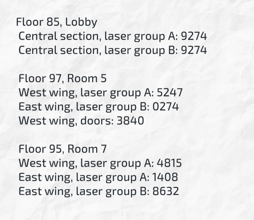 Location: El Futuro building. Room 9507, 95th floor