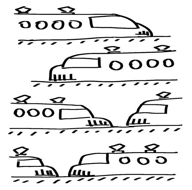 Each line of trains looks like one of the numbers written with dot-and-dash code