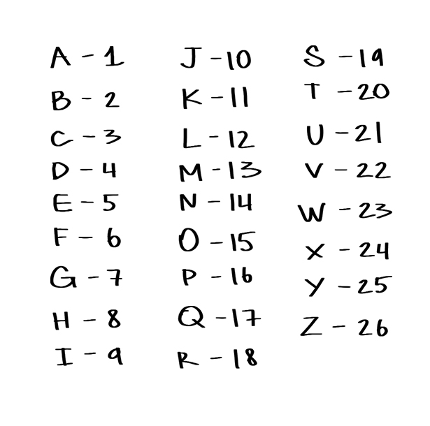 The notes (the flowers) should be read from left to right. The numbers replace the letters as it is stated in the note