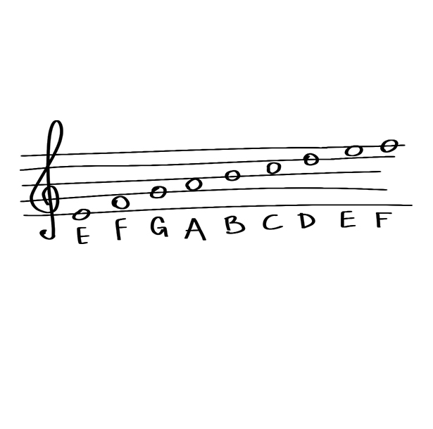 Match the position of each of the flowers with the musical staff to define which letter it complies with