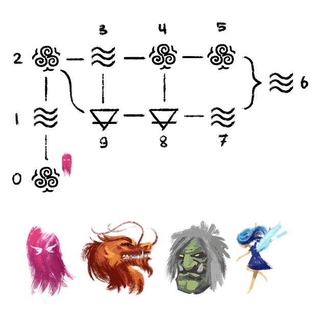 According to the note and the sketch, the troll has two possible places of living (earth element). But one of them is connected to the dragon’s place of living – water