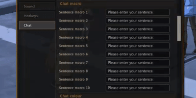 - 1 – ESC – > OPTIONS – > CHAT – > CHAT MACRO