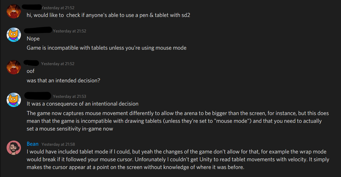 But it turns out, for my tablet (Wacom CTL-4100WL) I still couldn’t get it to work in-game. I suspect this is on Wacom’s drivers and how it handles, seeing that another person in the discord server was able to get their mouse mode working and leave it at that.