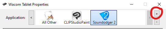 Add the application for application-specific settings through the + button, and select Soundodger 2 (note: game needs to be up for Wacom to detect it)