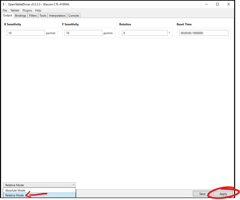 - Set the mode to Relative Mode, and click Apply