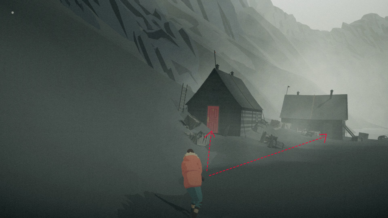Simply enter the 2 shacks shown in the image below, complete 2 short dialogue segments, and before exiting, interact with a document in each cabin.