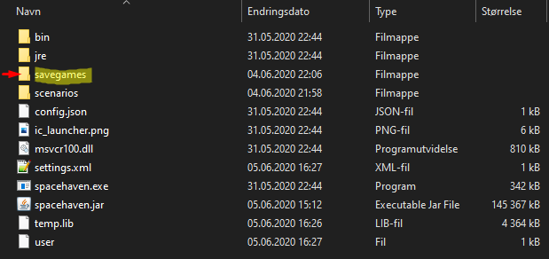 2. Now you should arrive here. The root folder of Space Haven. Open up the “savegames” folder.