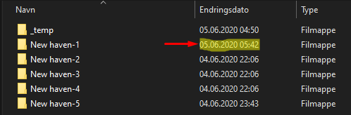 4. So, now I have created a new, manual save in New Haven-1. Now we navigate to the folder (Note the time of last logged edit of the folder).