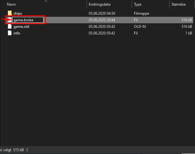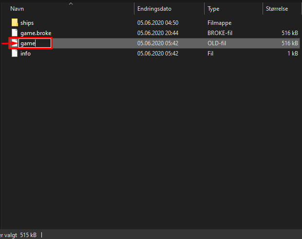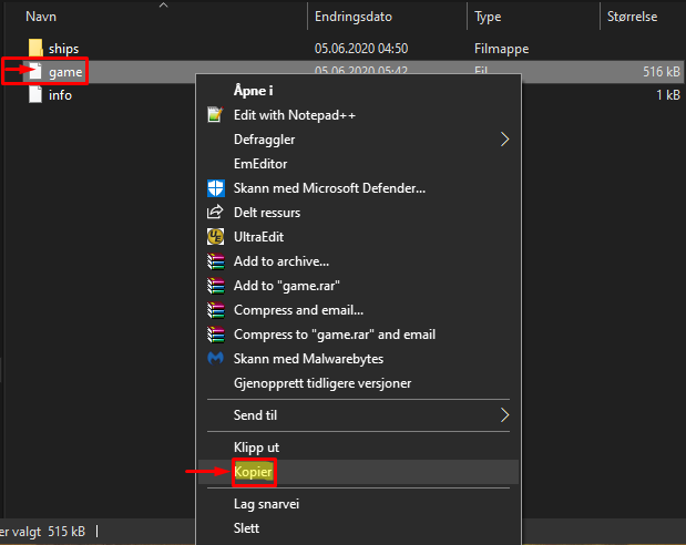 1. Ctrl-C or right click on the game file, and click copy. (In Norwegian “Kopier”)
