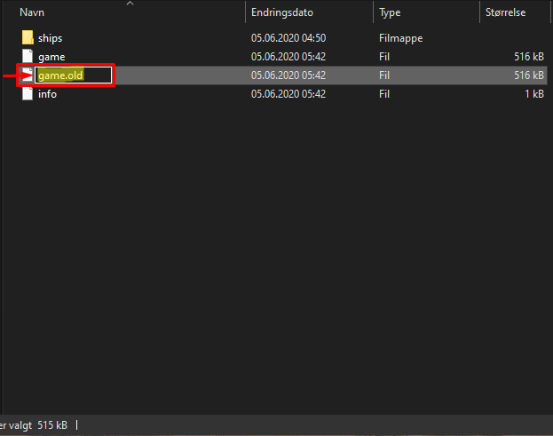 3. This will create a “game – copy” file. Now rename the file by double-slow clicking on the name, and name it: game.old. (This will be our backup, incase something goes wrong)