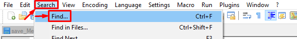 2. Now we want to open up the search function. To do so, either Ctrl-F or find “search” tab from the top left menu, and click on “Find…