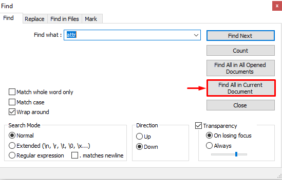 3. As we wish to edit crew skills, we simply search for “skills“! Make shure to click on “Find all in current document“. (Or skill as i apparently did in the immage here xD)