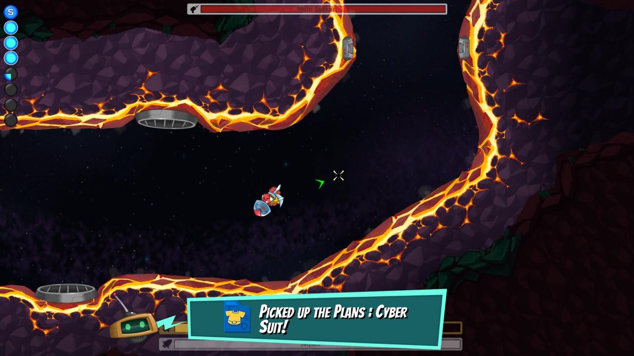 Suit Weapon: Multi Seeker – Shoots a arrow shaped drone that locks onto nearby enemies and attacks them. The projectiles also bounce off walls or enemies multiple times.