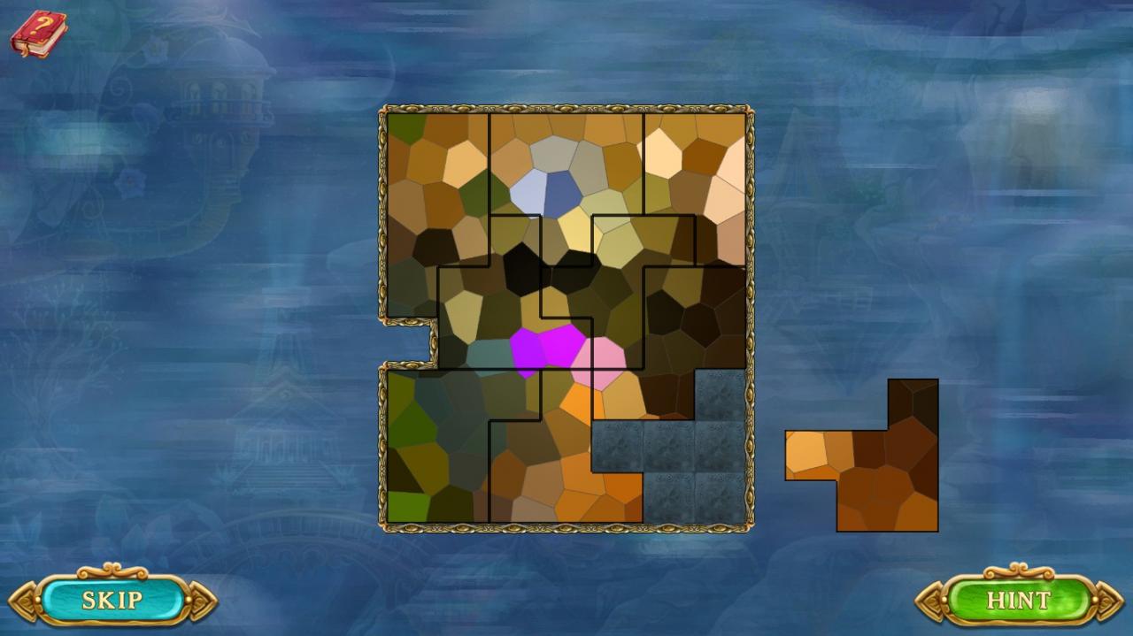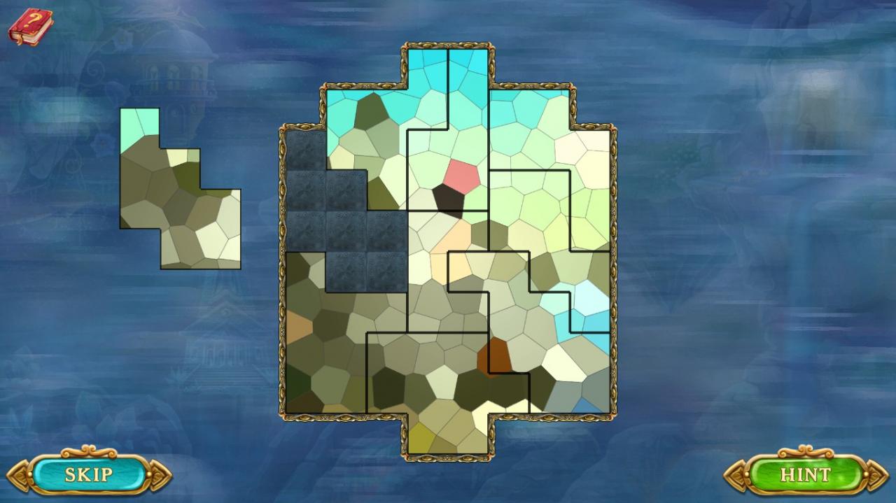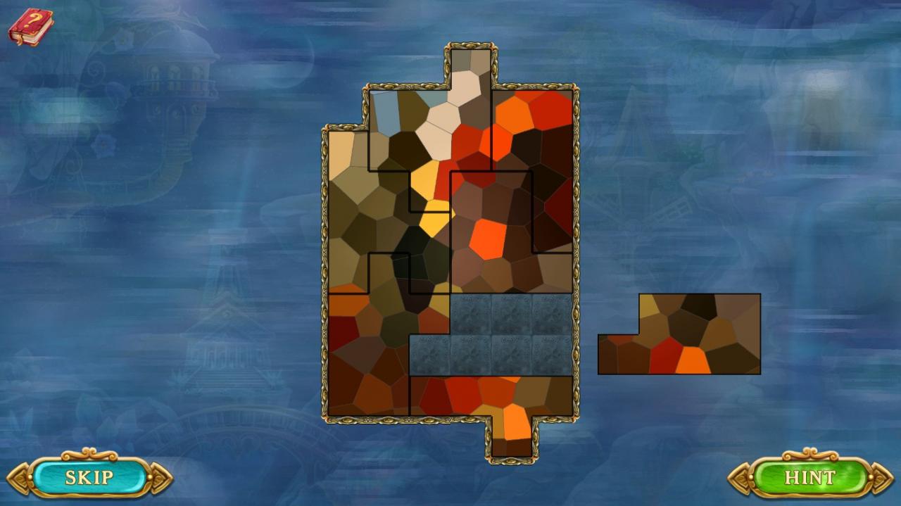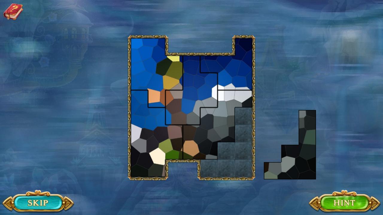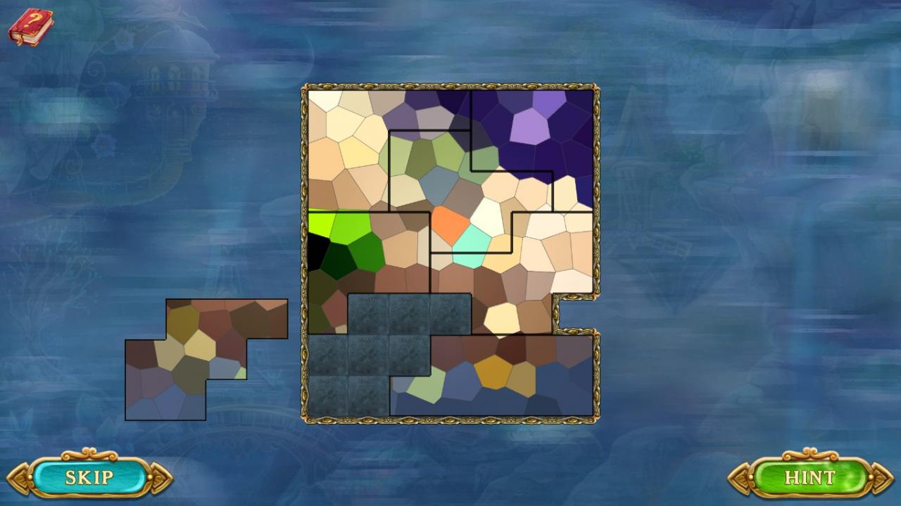 The new jigsaw puzzle minigame is pretty tricky. It’s not just a tangram-type puzzle as you have to match all the colors on the edges of each piece too. The way I finally figured out how to solve these puzzles without using the hint button is to line up all the pieces outside of the frame first focusing only on matching up all the colors. Then if your “finished” layout is not in the orientation the frame is, simply rotate each piece until the whole layout is in the right direction. When the puzzle is solved, you get to see the hidden picture underneath the blah mosaic pattern. Click on the picture again to get the end level dialog and go back to the rest of the game.