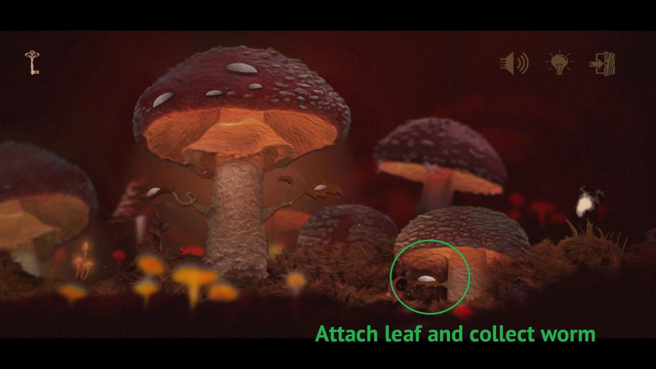 12. Attach the Bloody Leaf to the right-most mushroom. exit screen, return and collect the Worm from the leaf.